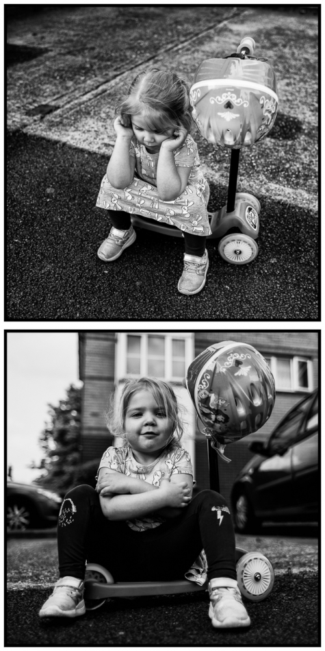 Zdjecia umieszczone kolo siebie lepiej by mi sie ogladalo. Zwroc uwage Autorze na pozycje dziewczynki i drugi kadr gdzie glowa jest centralnie umieszczona pod przysiadem.