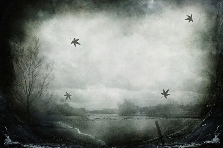 I also don't like these leaves. I think they are placed too evenly. There is also too dark on the left side of frame causing composition tilting to the left. Nice mood anyway.