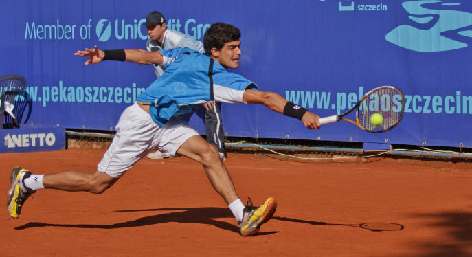 Ważne w tego typu zdjęciach jest jakość, moment uchwycenia a i kadr się liczy.Tutaj zabrakło jakości, zdjęcie jest ruszone albo zbyt długi czas naświetlania w tak dynamicznym ujęciu zastosowany, tenisista jest po prostu nie ostry. Postać zlewa się z tłem.Miał być komentarz, ale jest analiza