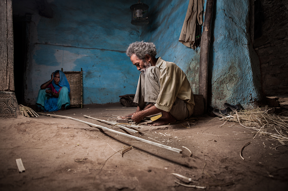 Postaci umieszczone w mocnych punktach. Genialnym zagraniem było umieszczenie owych postaci na pierwszym i drugim planie, i co ważniejsze wyeksponowanie ważniejszego planu zarówno perspektywa jak i oświetleniem! Mężczyzna który wyrabia meble z bambusa został przez Autora wspaniale wyeksponowany, światło zagrało fantastycznie. Mało tego Autor dopełnił całą opowieść, poprzez prawidłowe pokazanie nam odbiorcom detali i elementów, z których owe meble są wytwarzane.