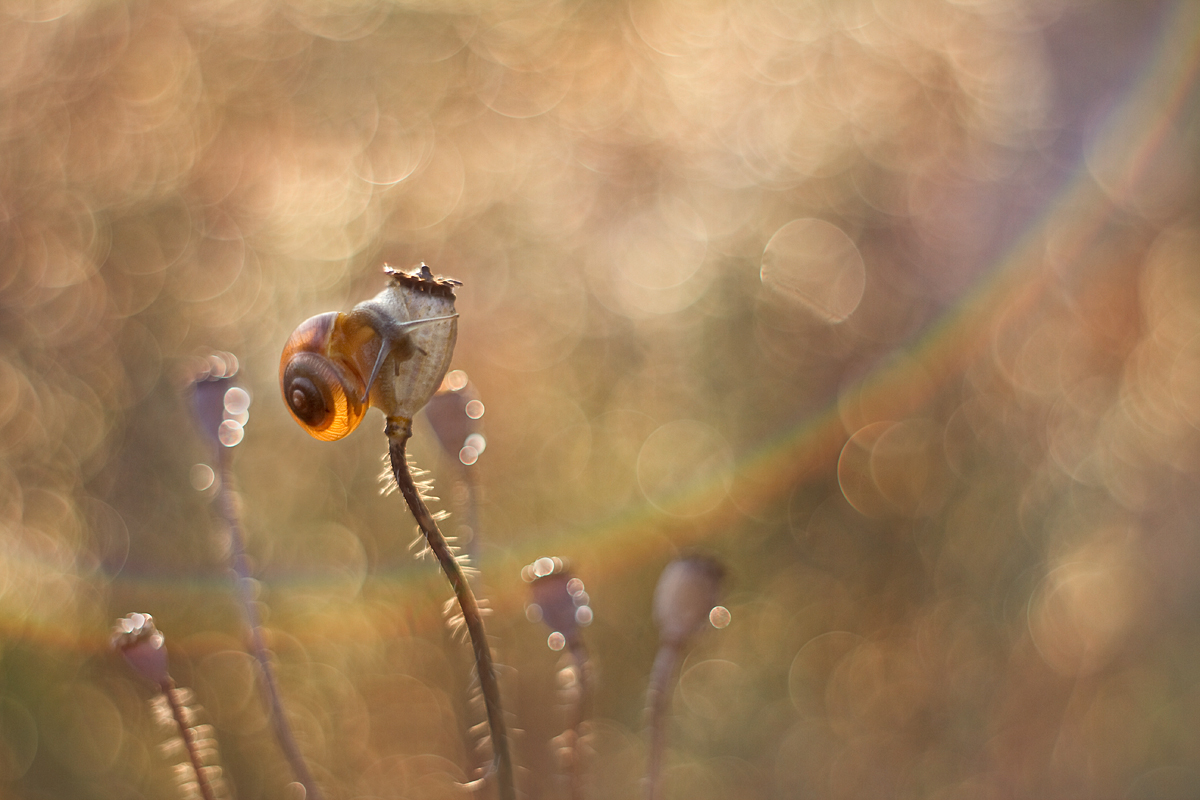 szkoda, że różki zagubiły się w tle makówki, wolę zdecydowanie kiedy ślimak pozuje wystawiając rogi okazalej, i nic im nie "zawadza", ale mimo wszystko publikuj :)