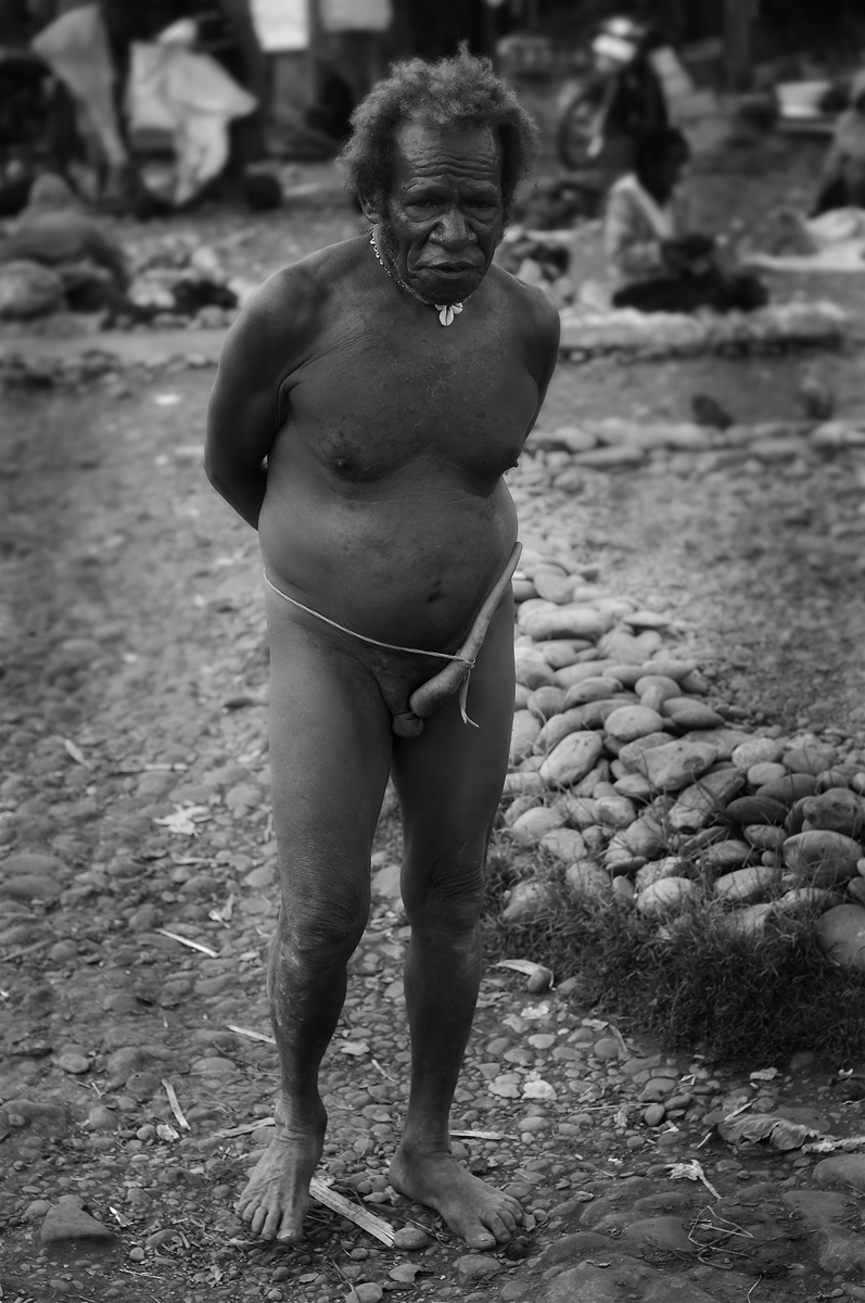 fotoel - z koteką na rynku. IRIAN JAYA. Zdjęcie 95449