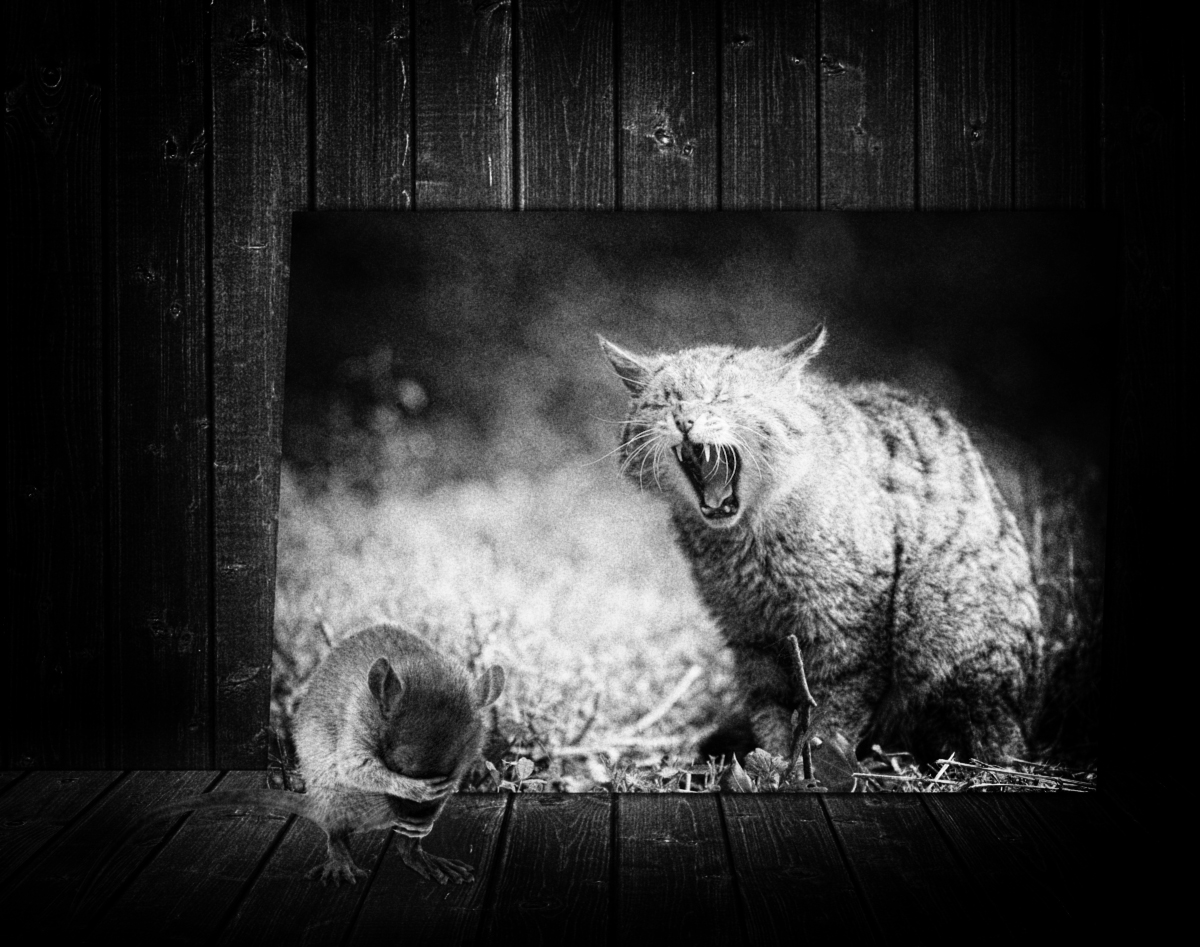 Nie chcę się wtrącać w Twoje wizje Mistrzu, ale ten patyk sprzed kota to bym wyrwała. Chyba, że to na szaszłyka z tej biednej mysi. ![]()