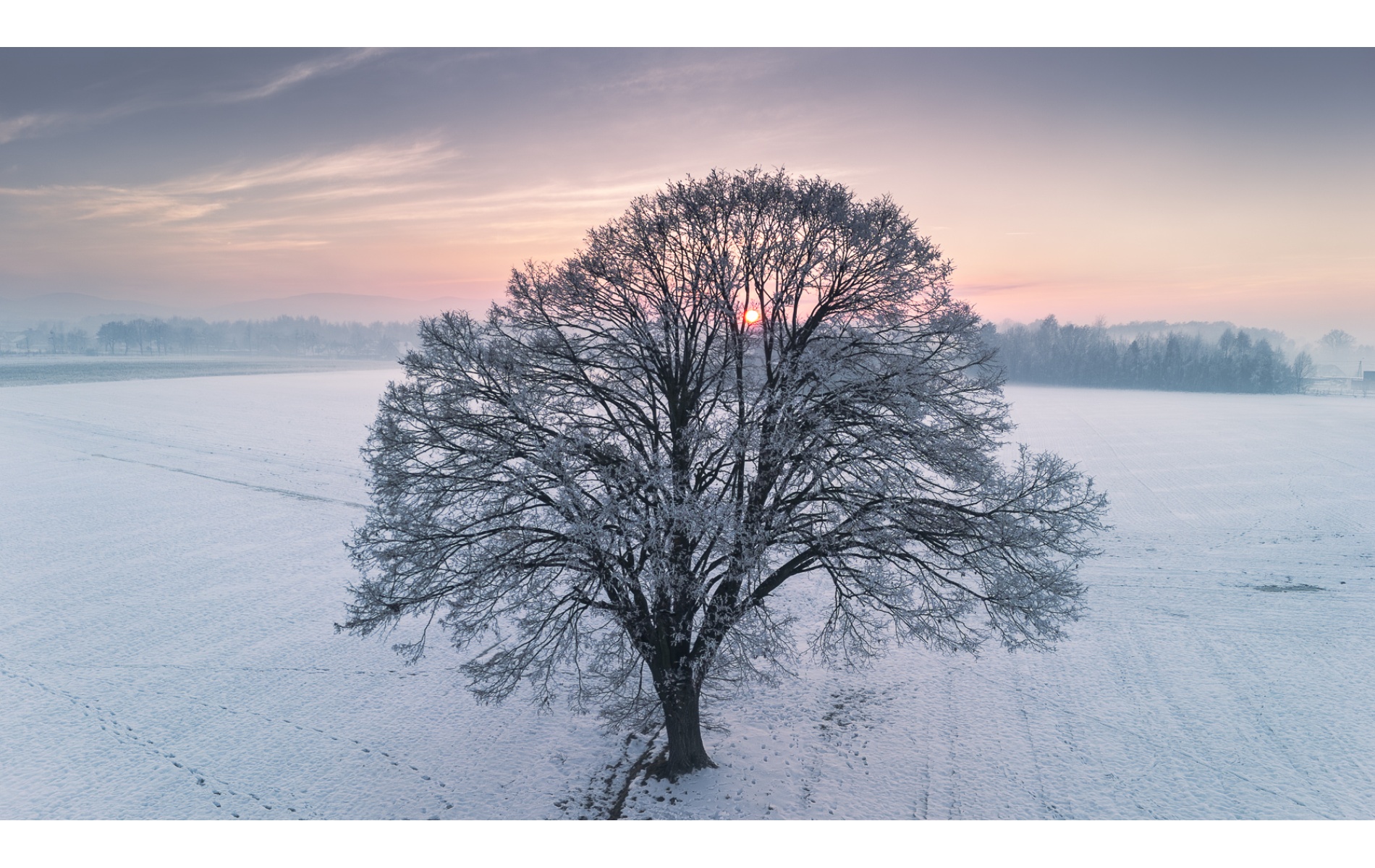Zimowy krajobraz z samotnym drzewem